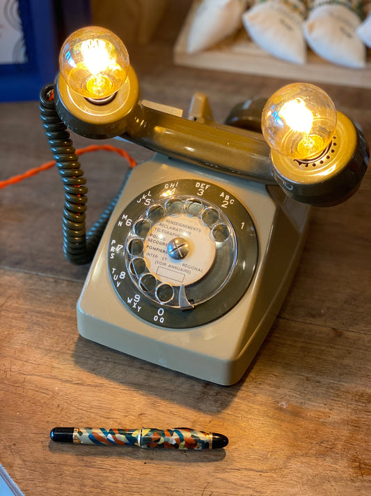 Lampe à poser upcyclée "Téléphone à cadran & écouteur arrière" kaki