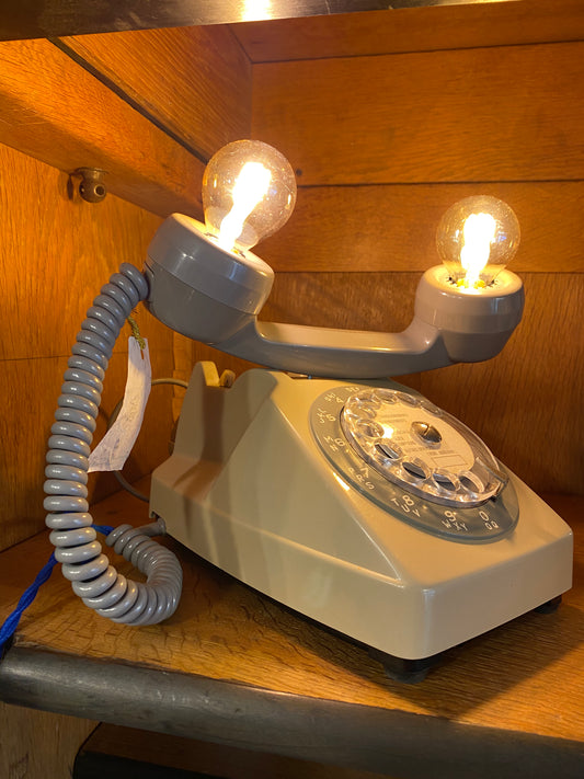Lampe à poser upcyclée "Téléphone à cadran & écouteur arrière" gris
