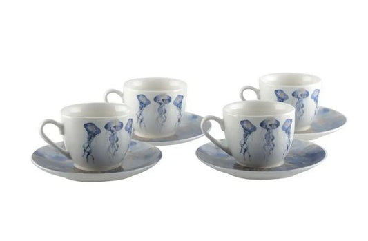 lot de 4 tasses à café avec sous tasses méduse