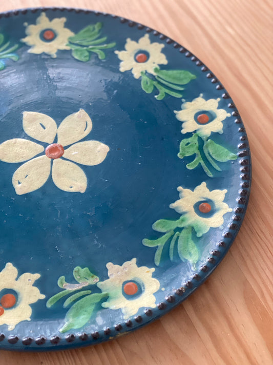 Grand plat céramique ancien peint à la main