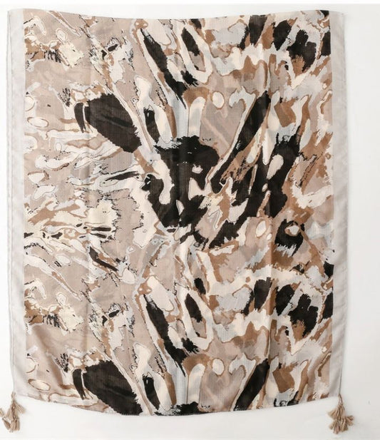 Grand foulard imprimé léopard multicolore avec pompons
