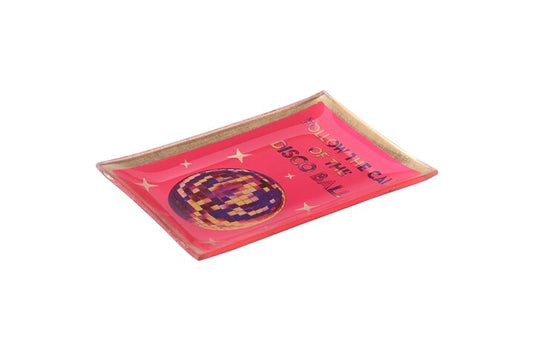 Assiette en verre "Follow the call of the disco ball", taille M, neon pink