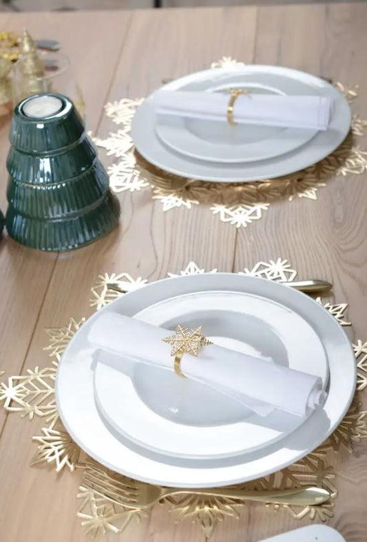 Lot de 4 ronds de serviettes flocons dorés