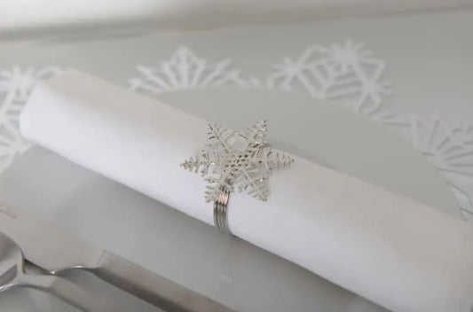 Lot de 4 ronds de serviettes flocons argentés