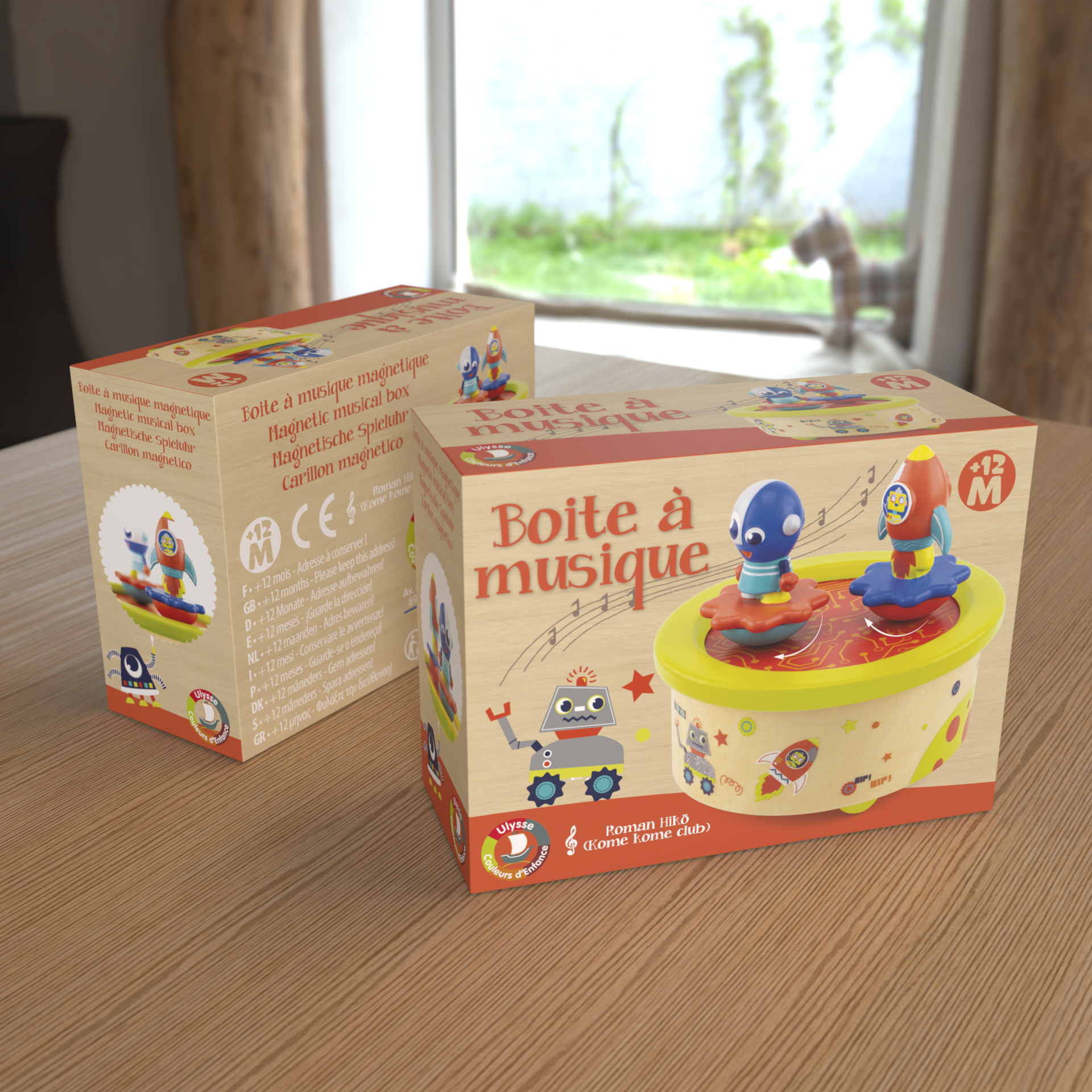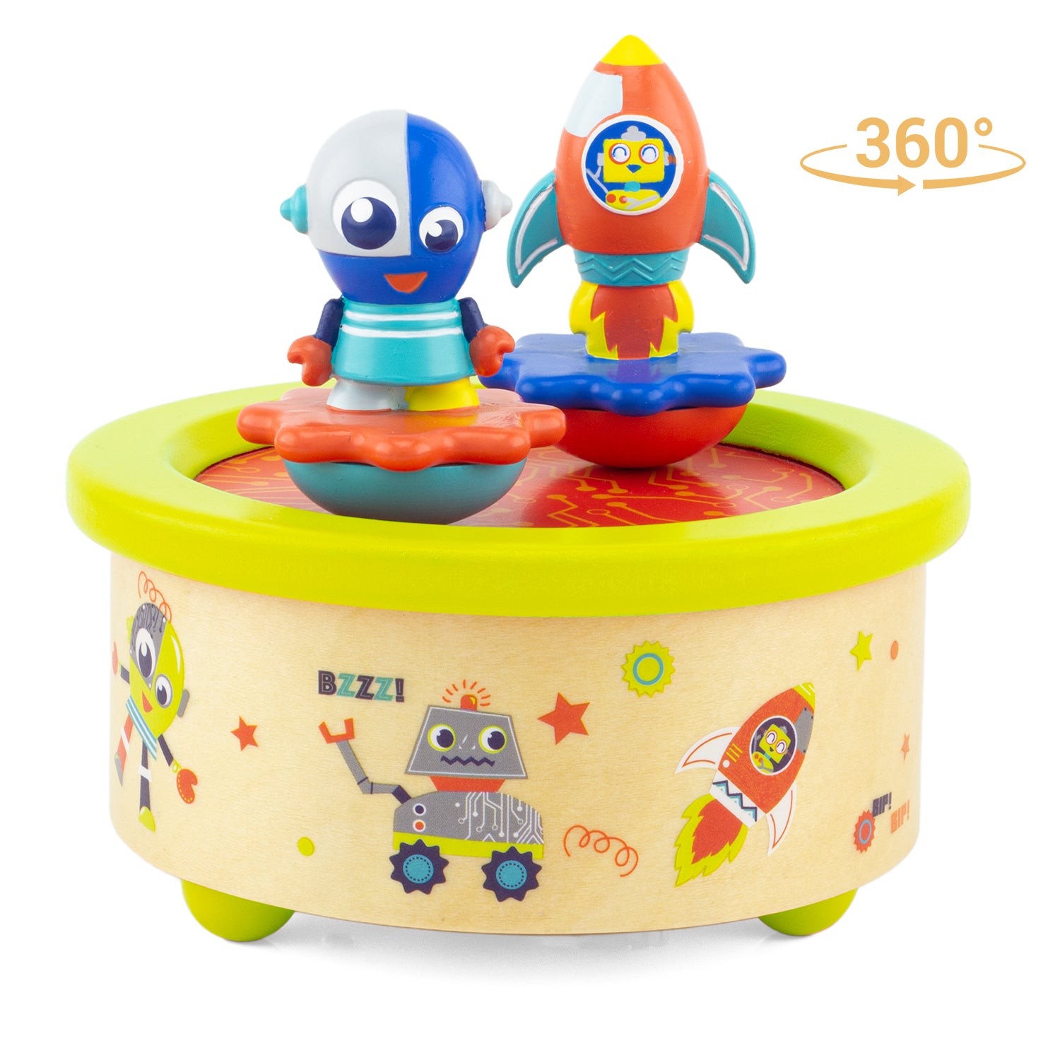 Boite à musique en bois "la fusée et le robot"