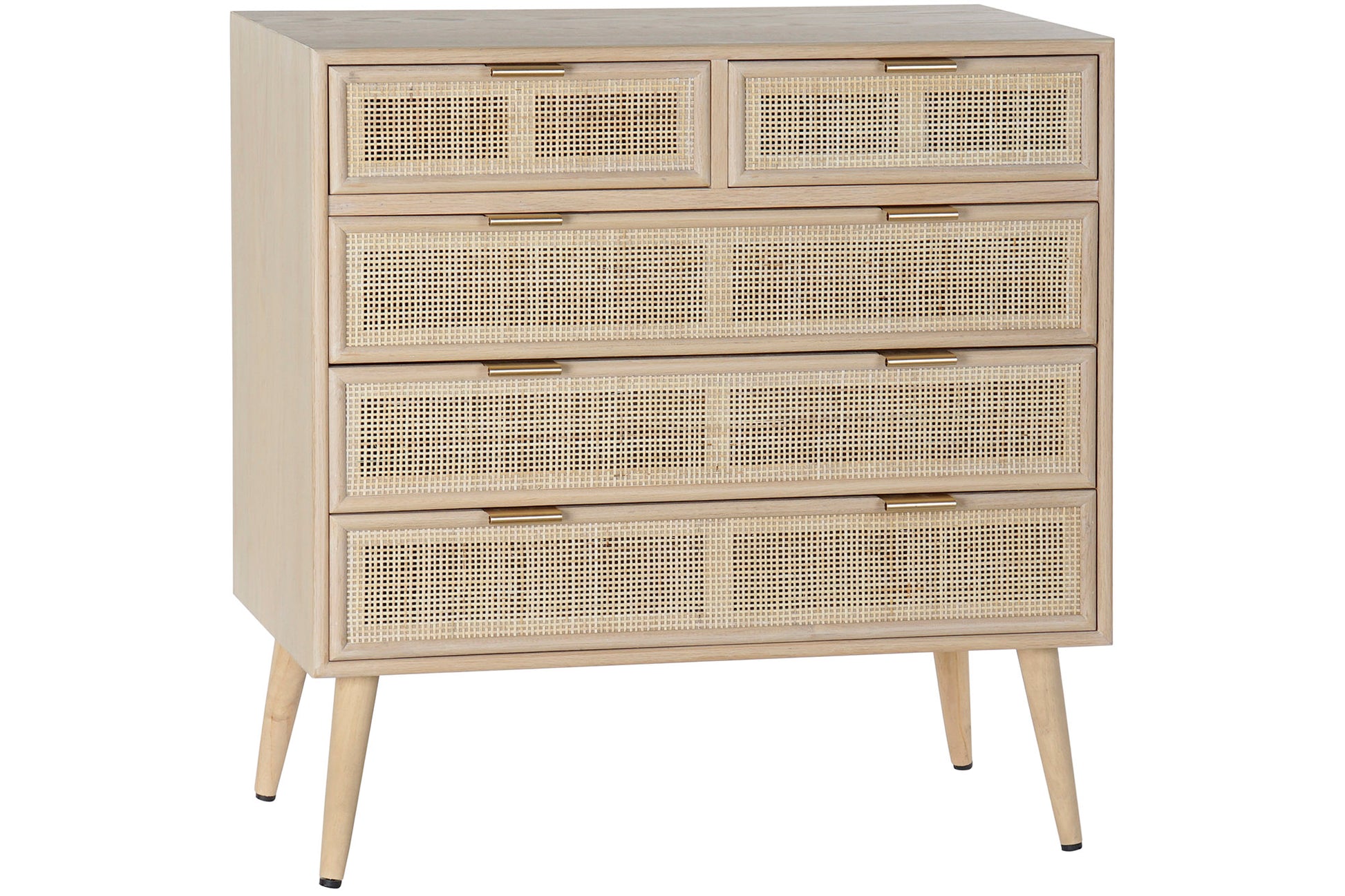 COMMODE 5 TIROIRS ROTIN NATUREL