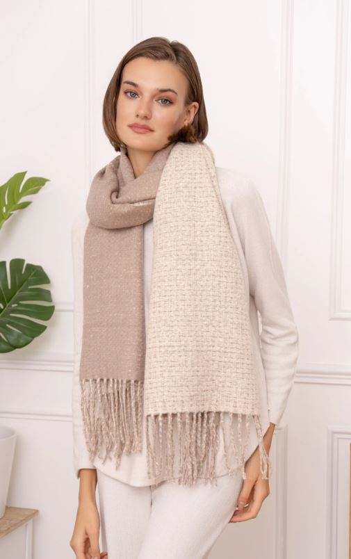 Echarpe douce bicolore réversible avec frange