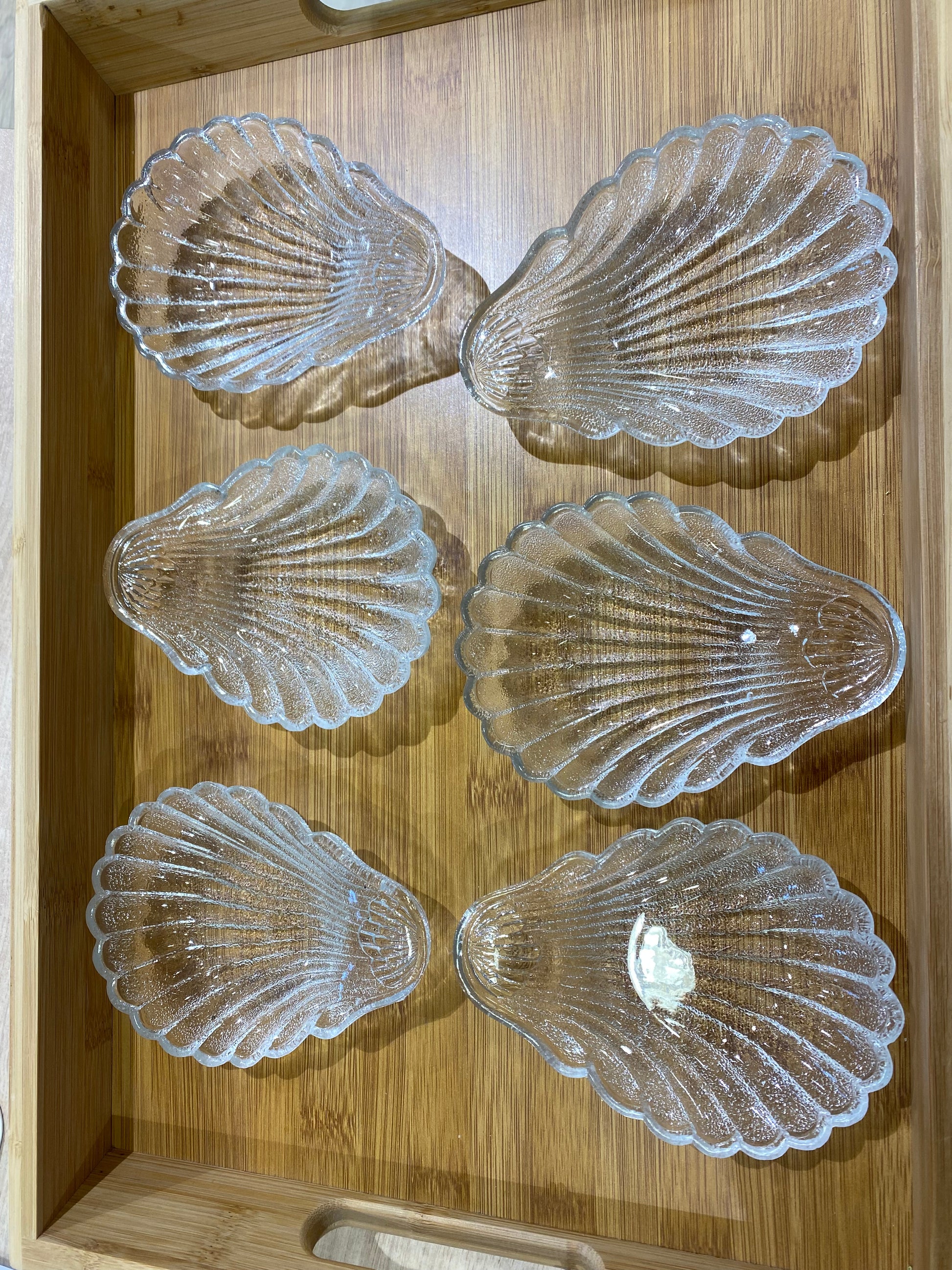 Superbe lot de six coupelles en forme de coquillage, réalisées en verre moulé de qualité. Leur design original et élégant apporte une touche raffinée à vos tables, que ce soit pour un repas quotidien, un dîner entre amis ou une présentation chic de desserts et amuse-bouches.