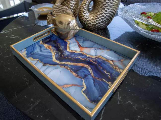 Plateau rectangulaire bleu aquarelle 40 x 30 x 4.5cm
