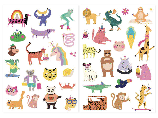 La fête continue avec la pochette de tattoos Cute Animals fluo et pailletés !